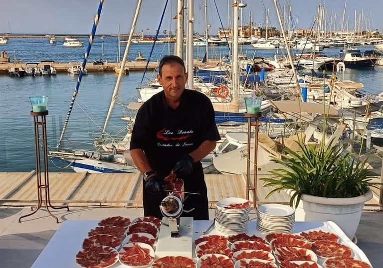 Soy Leo Donate, experto en el arte del corte de jamón. Con más de 10 años de experiencia, ofrezco mis servicios en la Marina Alta, Denia y alrededores, para eventos inolvidables.